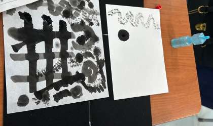 「墨アートをやってみよう」と題し挑戦していました。墨汁に水滴を落としてアートしていきます。少し難しそうでしたが、いろんなアートができあがっていました!