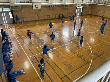 「蹴る・守る・投げる」など、たくさんのことを考えながらプレーしています。クラスごとに作戦を立てたり、守備のかたちが違っていたりと工夫がされていました。