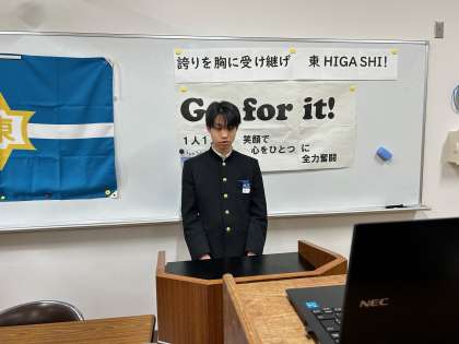 生徒会の区長表彰や男子テニス部の表彰が行われました。そして、各常置委員会から目標の共有がありました。