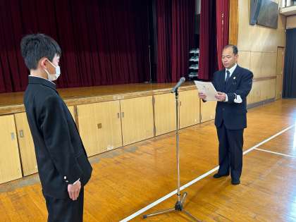 代表生徒に校長先生から修了証が手渡されはやかった1年間が終わったと実感しました。