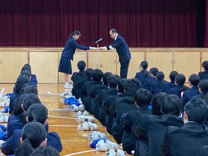 もうしばらくすると、世界に誇る大阪として、関西万博が開催されます。世界の人たちとの繋がりを大切にしましょう。この3学期は、能登半島地震の被災者支援のために、生徒会活動を中心に募金活動を行いました。昨日お返しのファイルをいただきましたね。これも繋がりの一つです。