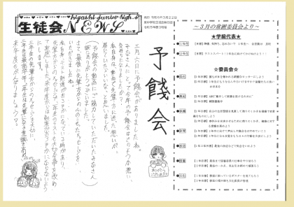 生徒会新聞を3月22日に発行しましたので掲載します。こちらをクリックするとご覧いただけます。