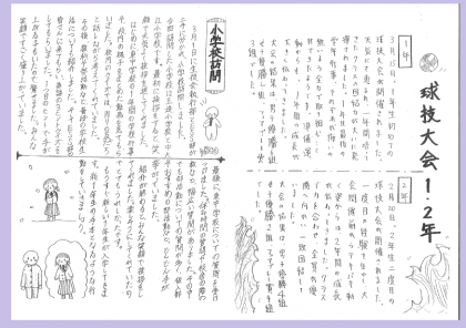 表面では、3月の常置委員会からの報告と『予餞会』についての記事が掲載されています。裏面では、『1・2年 球技大会』と『小学校訪問』の記事が掲載されています。