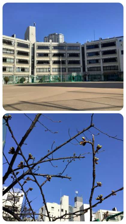 朝の風景です。雨も上がり、青空が広がっています。気温もぐんぐん上がるとのこと。桜も一気に開花することでしょう。入学式が満開の桜であれば、素敵ですね。