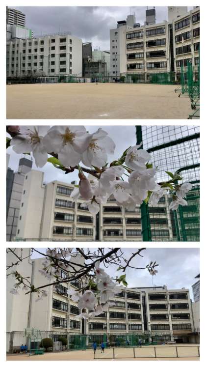 入学式を終え、春季休業も後半4日となりました。グランドではテニス部の皆さんが、練習の準備を始めました。最高気温は20度近くまで上がり、グランドの桜は開花が進んでいます。4月8日(月)の始業式には、満開の桜が生徒の皆さんを歓迎することでしょう。