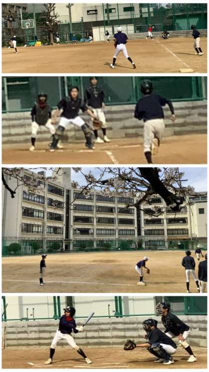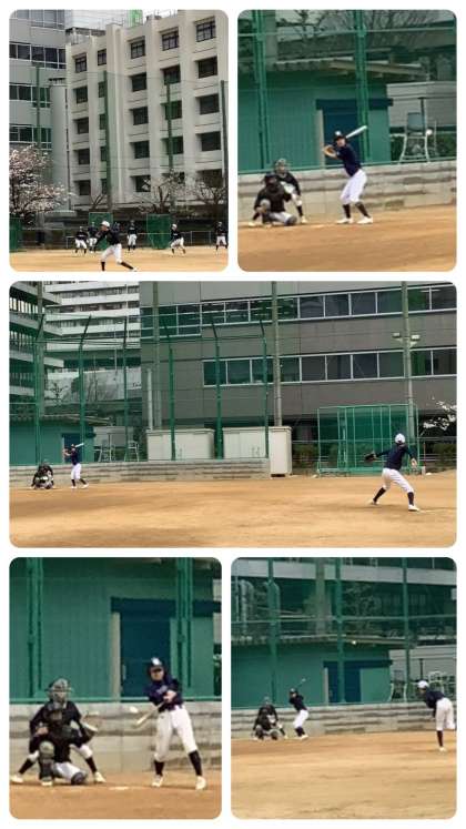 野球部が、グランド全面を使って実践練習に取り組んでいます。ボールのスピードが上がるなどレベルアップしたプレーを垣間見ることができます。また、プレーもさることながら、審判技術もかなりアップしています。スポーツの3要素は『するスポーツ・観るスポーツ・支えるスポーツ』です。野球の試合を支える審判を通して、野球の見方を広げます。