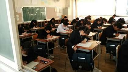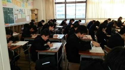 輝く朝日の中、いよいよ第三回実力テストが始まりました。理科から始まり、社会・国語・数学・英語の順で行われます。