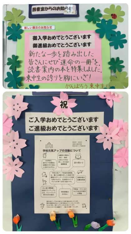 『ひらいてワクワク めくってドキドキ』こどもの読書週間は4月23日から5月12日の20日間です。東中生が素敵な本と出会いますように・・・。