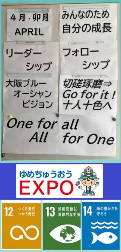 本校でも、中央区役所からの依頼により、SDGsや平和学習等の取組に関連する記事を掲載した場合には、タイトルに「ゆめちゅうおうEXPO」のワードを、また、関連する画像に「ロゴ」を可能な範囲で掲載していきますのでご承知ください。