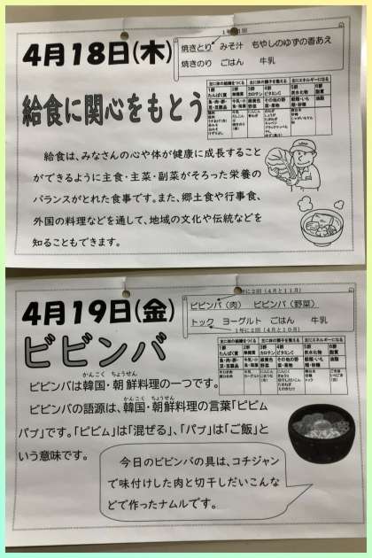 今週の給食当番の皆さん、一週間ありがとうございました。来週の当番の皆さん、マスク・エプロン・三角巾の3点セットを用意して、1週間よろしくお願いします。