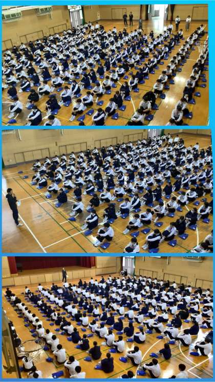 上枝先生のお話を、生徒たちは集中してきていました。かけがえのない命、自分の命を大切にするとともに、仲間の命を大切に過ごしましょう。