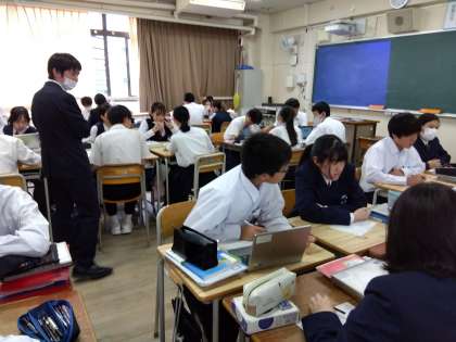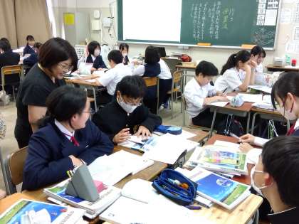 3年国語:学習者用端末を使い、好きな歌の『歌詞』を紹介するスライドを作成し、班ごとに発表しました。