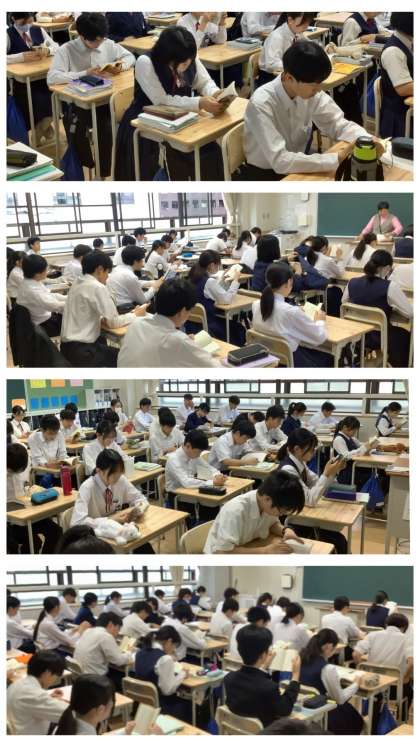 3年生は、担任の先生と一緒に、教室で読書の時間です。落ち着いた気持ちで1日が始まります。