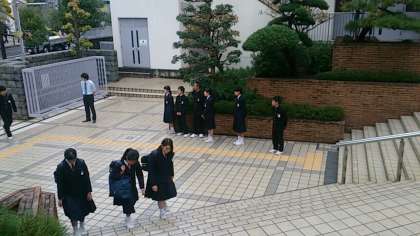 昨日から降り続いた雨が上がり、正門前では、生徒会の皆さんによるあいさつ運動が行われています。