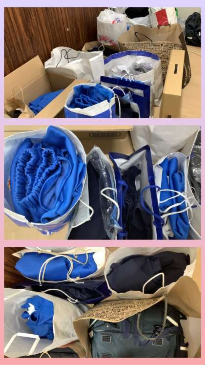 ※ PTA学級委員の皆さにより整理されて、出番を待つリサイクルの標準服や体操服、鞄などです。ご協力ありがとうございました。