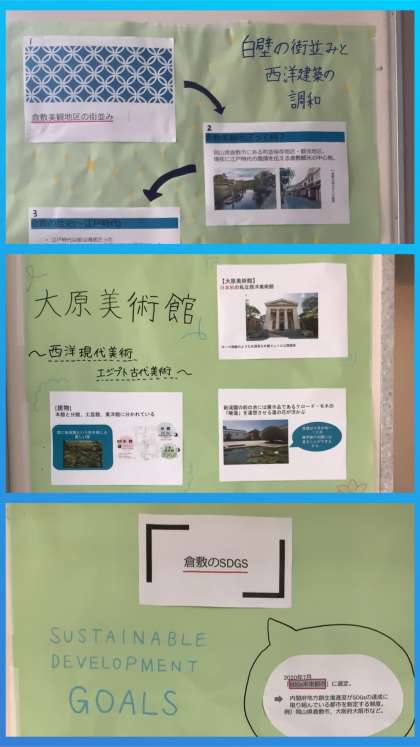 修学旅行実行委員会作成の壁新聞の新シリーズが廊下に登場。テスト前の緊張した授業から、休み時間にほっと一息、修学旅行に向けて楽しみを膨らませます。平和学習の取組、現地の事前学習、ルールづくりと、実行委員の取組は続きます。