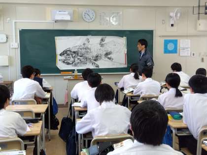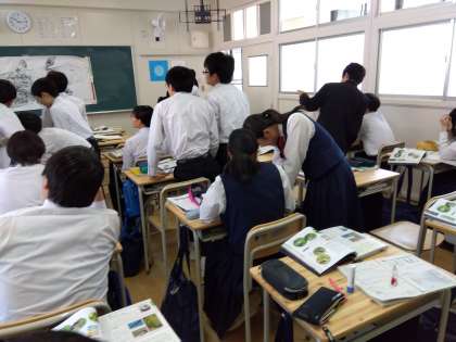 3年理科では「進化」について学習しています。今回はシーラカンスの魚拓を見て、魚類が両生類へとどのように進化してきたかを考えました。みんなでディスカッションした後、結果を共有しました。