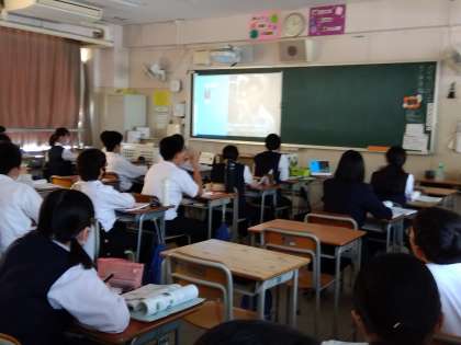 1年技術:ウナギの完全養殖についての映像を見て、水産業について学習しました。「よく観察すること」が新しい技術を確立するのに大切なことだそうです。