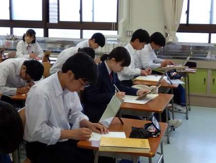 3年美術:鏡を見ながら鉛筆で自画像を作成しています。みんな真剣に取り組んでいました。自分の顔の特徴を上手にとらえて描くことができていました。