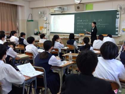 2年社会:戦国時代、ヨーロッパの人がやってくる中で日本がどのように変わっていったかを学習しました。教育実習の先生が授業をされています。