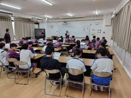 水泳部は、本日、中間テスト終了後、中央区役所のご紹介で、『野村不動産ライフ&スポーツ』から講師の先生に4人もお越しいただいて、体組成測定を行いました。また、測定後は、その結果の見方を説明していただき、今後の水泳トレーニングなどのアドバイスを受けました。講師の先生は、もと水泳選手で、かなりの成績を残されていたアスリートで、部員たちは熱心に話を聞いていました。