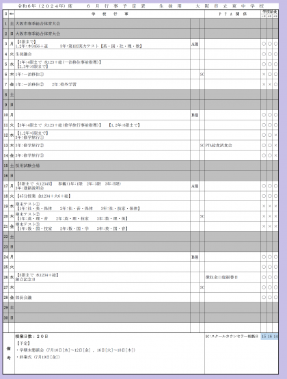6月には、各学年に大きな行事が予定されており、行事に向けての取組が学習と並行して進められます。また、期末テストが、6月19日(木)・20日(木)21日(金)に予定されています。