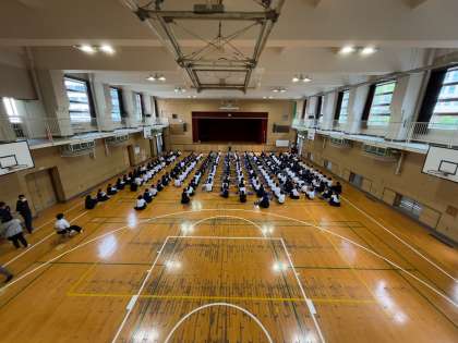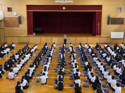 また、給食係の代表生徒からは、配膳の時の、給食当番の3点セット(マスク・エプロン・三角巾)とマスクの全員着用についての連絡がありました。