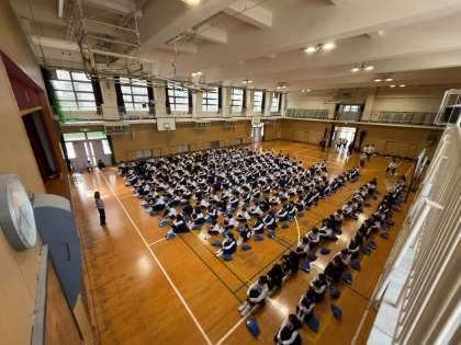今日は英語科の先生から「中間テストが返却されて、どのように受け止め、期末テストに向けて、どのように取り組んでいくのか」などについてのお話がありました。