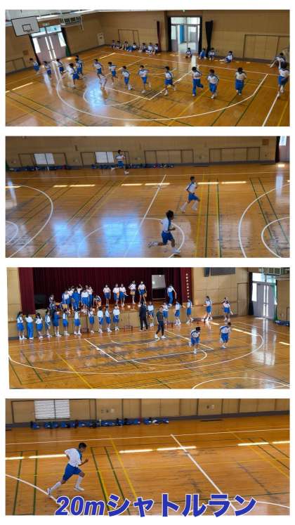 シャトルランでは、20人ほどで一斉にスタート。音楽に合わせて20mの走路を往復する中で、音楽のテンポが上がります。1人抜け、2人抜け、100往復する頃には3人、そして2人、最後は1人です。体力への挑戦とともに、自分自身への挑戦です。