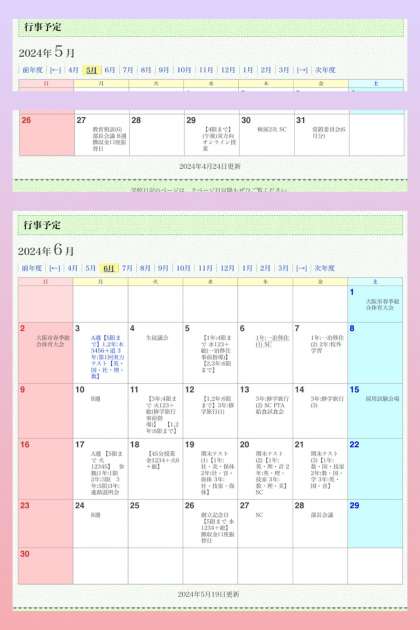 なお、行事予定は、画面上部の「行事予定」タグ、右側の「配布文書」の一覧などからご覧いただけます。