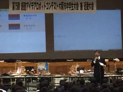 本日、大阪市立淡路中学校で第15回創造アイデアロボットコンテスト大阪市中学生大会兼近畿大会が行われています。本校技術部からは7チームが全国大会への切符を掴むため、参加しています。