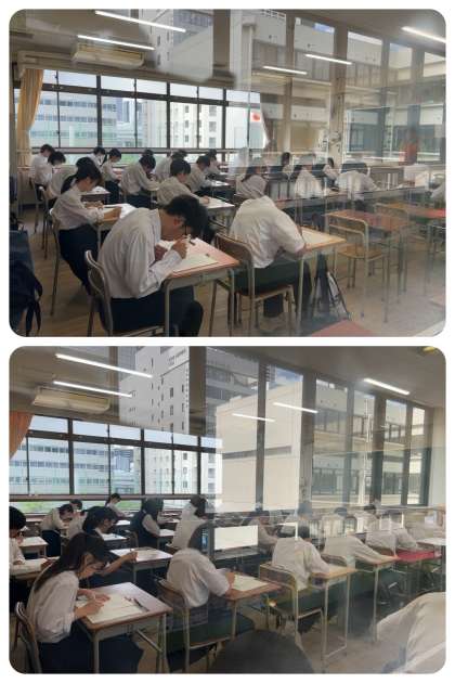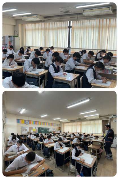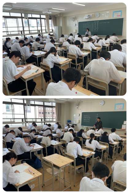 3年生が、第1回実力テストに挑んでいます。どの教室も緊張感に包まれています。進路選択に立ち向かう3年生。