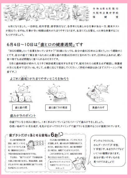 ほけんだより(6月号)を発行します。(こちらをクリックするとご覧いただけます)