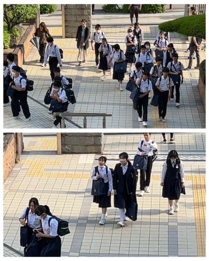 爽やかな風が心地よい朝を迎えました。6月になり、気候の変動が大きく、体調管理に気を使います。生徒たちは、着る服を気候や体調に合わせてチョイスして登校します。上着を着る着ない、ブラウス丈(長そで・半そで)、リボンを着ける着けない等など。