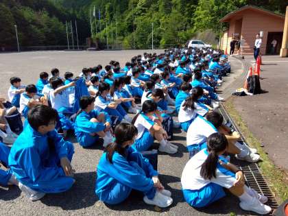 朝食、清掃が終わって、今から野外炊飯に向かいます。
