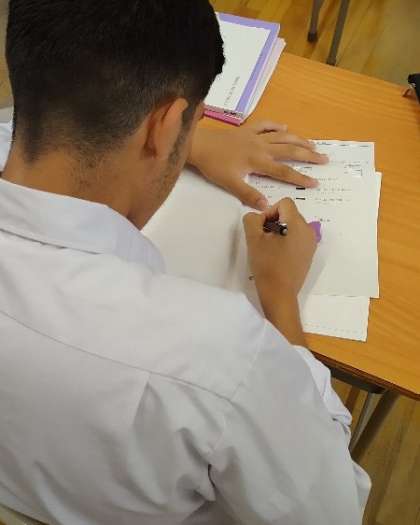 数学の習熟度別授業では、説明を聞いた後、問題に挑戦。みんな集中して熱心に取り組んでいます。
