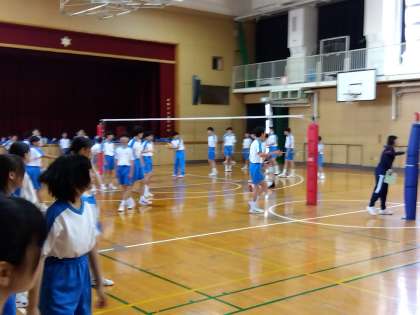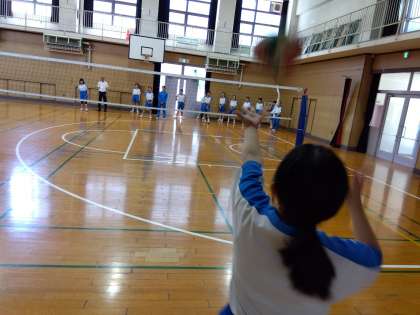 2年生体育:男女ともバレーボールに取り組んでいます。