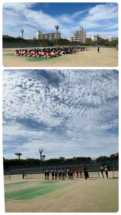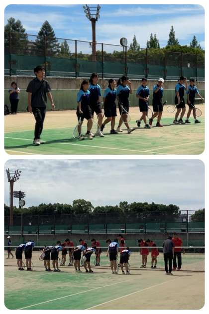 春季総体の会場は鶴見緑地庭球場。素晴らしい施設で試合をさせていただきます。運営の先生方、ありがとうございます。この団体戦は、各ブロック大会予選を突破した24校で行われ、東中は3ブロックの代表としての出場です。