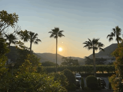 (参考)瀬戸大橋を挑み2日目の日の入りです。そして、3日目の朝は山間から日の出です。上の写真は「日の入り」の様子を下の写真は「日の出」の様子をGIFファイルにして掲載しています。