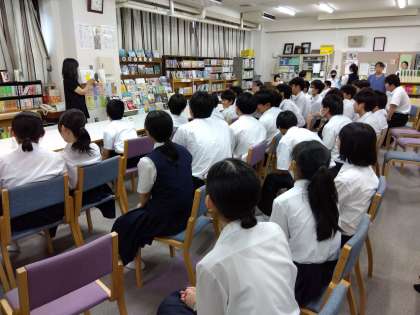 学校元気アップボランティアの主催で昼休みの時間に読み聞かせの会を行いました。40人を超える生徒が熱心に絵本の読み聞かせを体験しました。生徒たちは童心に帰って、驚きの声や歓声の声をあげていました。大変楽しいひとときでした。