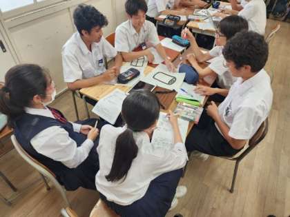 写真の講座は、OBFの先生による『マーケティング』の授業です。それぞれのグループでドリンクの開発をしています。