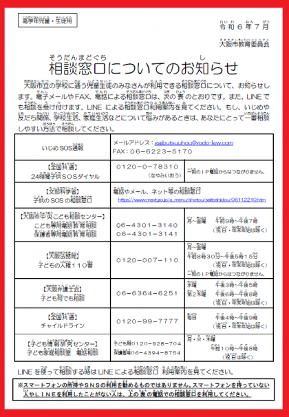 R6_7 相談窓口についてのお知らせ(生徒用 ルビあり)