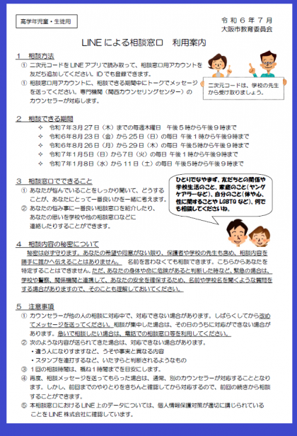 R6_7「LINE」による相談窓口 利用案内(生徒用 ルビあり)