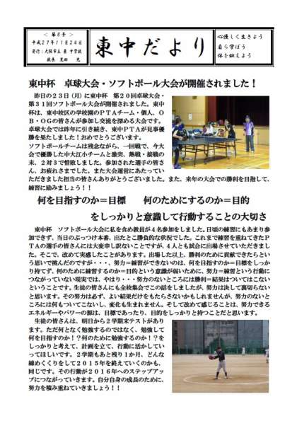 トップページ右側の「配布文書」−「東中だより」に掲載しております。