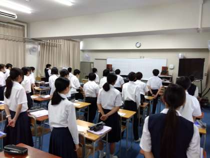 3年音楽:" faithful elephants"の音読の練習をしています。