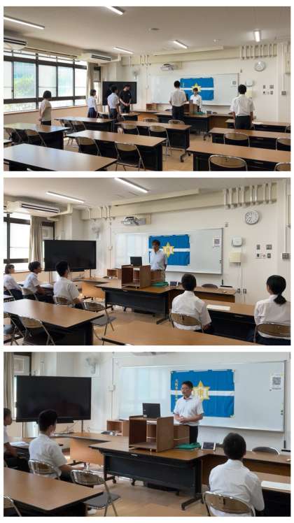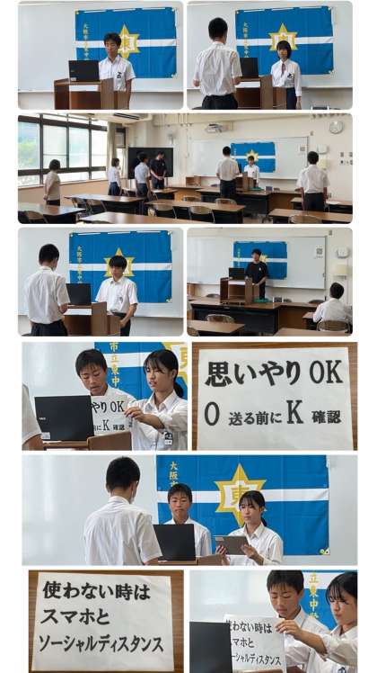 生徒指導担当の先生からは『周りの状況に応じて行動することの大切さ。夏休みなど、私服で行動するときも『東中生』としての誇り(プライド)を持って行動するように』などのお話がありました。