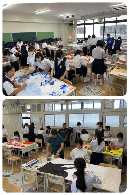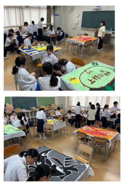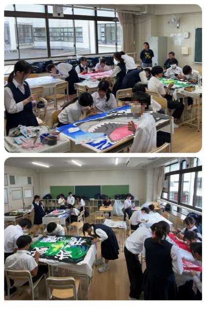 学期末懇談と並行して、学級旗の作成に取り組んでいます。各学年に割り当てられた学習室で、担当の先生に見守られての作業。完成が楽しみです。