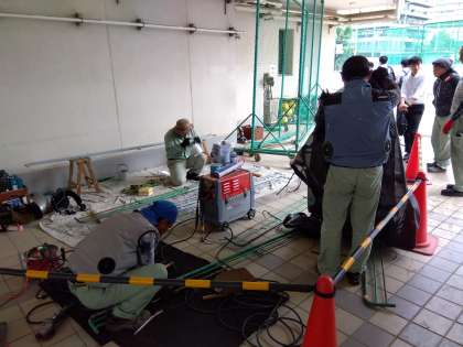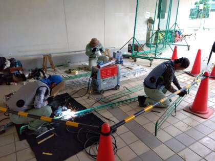 今日から営繕・園芸事務所の営繕班が防球ネットの修理(溶接・塗装)のため来校しています。監視をしながら、策を設けたり、覆いをして溶接の光が見えないようにしたりして、安全に配慮していますが、生徒の皆さんも作業がスムーズにできるよう協力をお願いします。