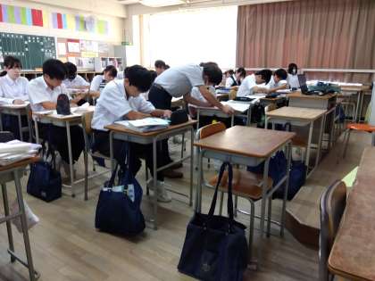 3年数学:少人数分割授業で問題演習に取り組んでいます。わからないところは積極的に先生に質問をしていました。