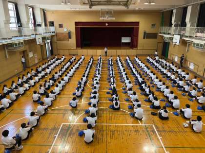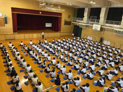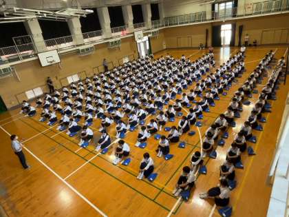 進路指導担当の先生から、進路は一人ひとりのことですが、進路は団体戦です。班やクラス、学年でしっかり進んでいきましょう。最後は個人の力が試されます。その時に備えて、しっかり力をつけていきましょうとのエールがありました。